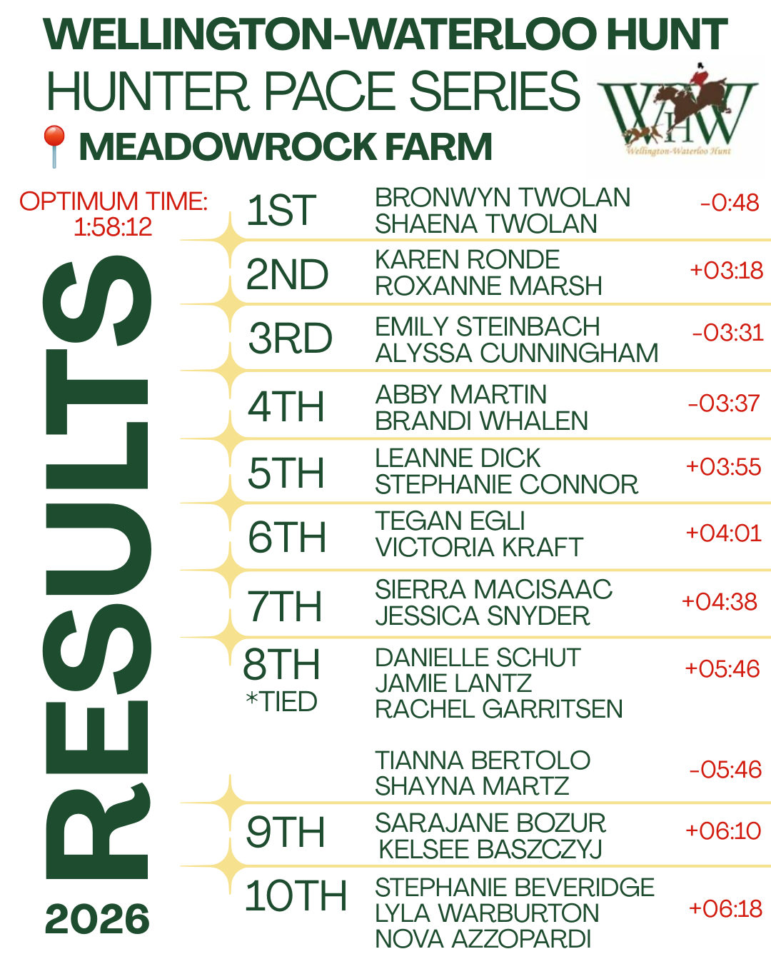 Our Enthusiastic Pace Participants, Volunteers, Guelph Pony Club, MeadowRock Farm, and Organizer Robin Hall, MFH for another Great Pace and Another Great Memory!